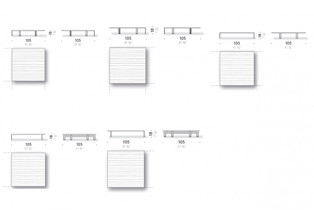 Flying Landscape diseñada por Piero Lissoni para DePadova es una mesita en chapa de acero acabada con pintura acrílica gris rugosa y pies en material termoplástico color latón. La tapa es de mármol en diferentes acabados. La mesa está disponible en diferentes modelos y medidas y con la versión para colocar junto al sofá.