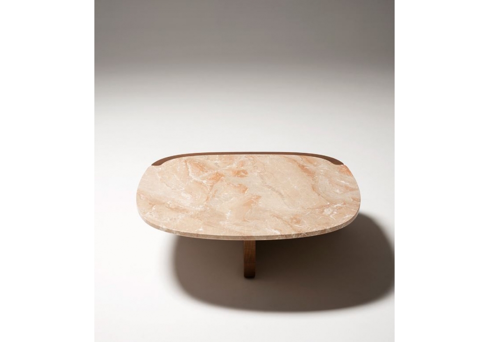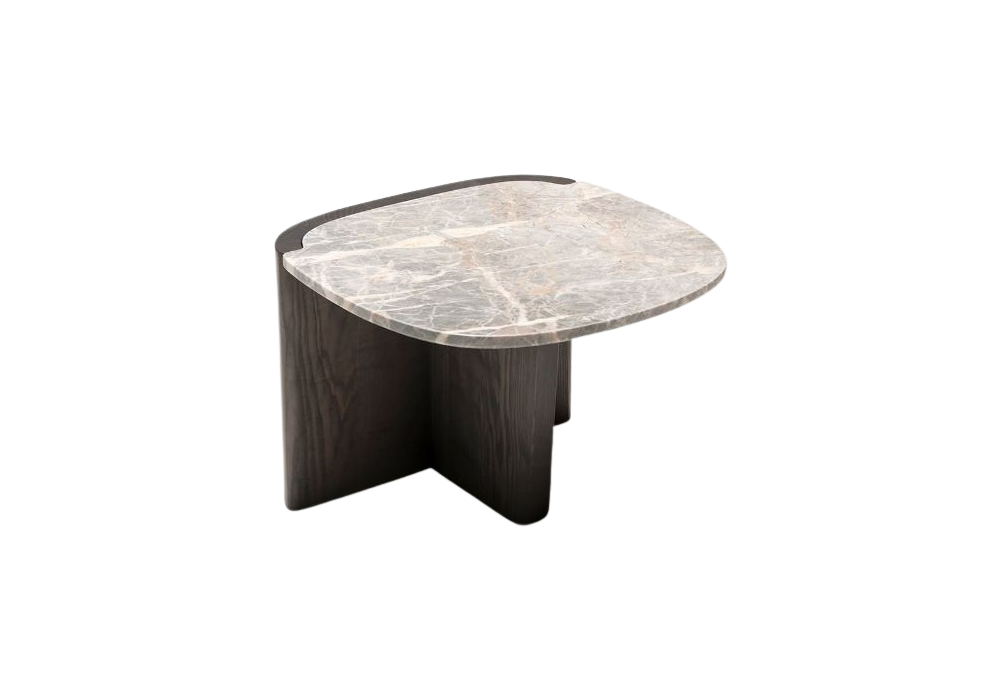 Trampolino diseñada por Monica Förster para Tacchini es una mesita disponible en dos tamaños. La base es de fresno macizo a poro abierto, y la tapa es de mármol con acabado Fior di Pesco o Breccia.