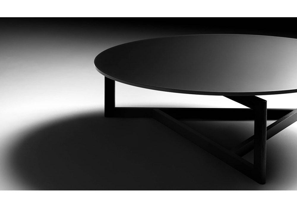 Connecticut diseñada por Jens Risom para DePadova es una mesa de centro en roble macizo teñido antracita con tablero de mármol en diferentes acabados. Está disponible en diferentes tamaños.