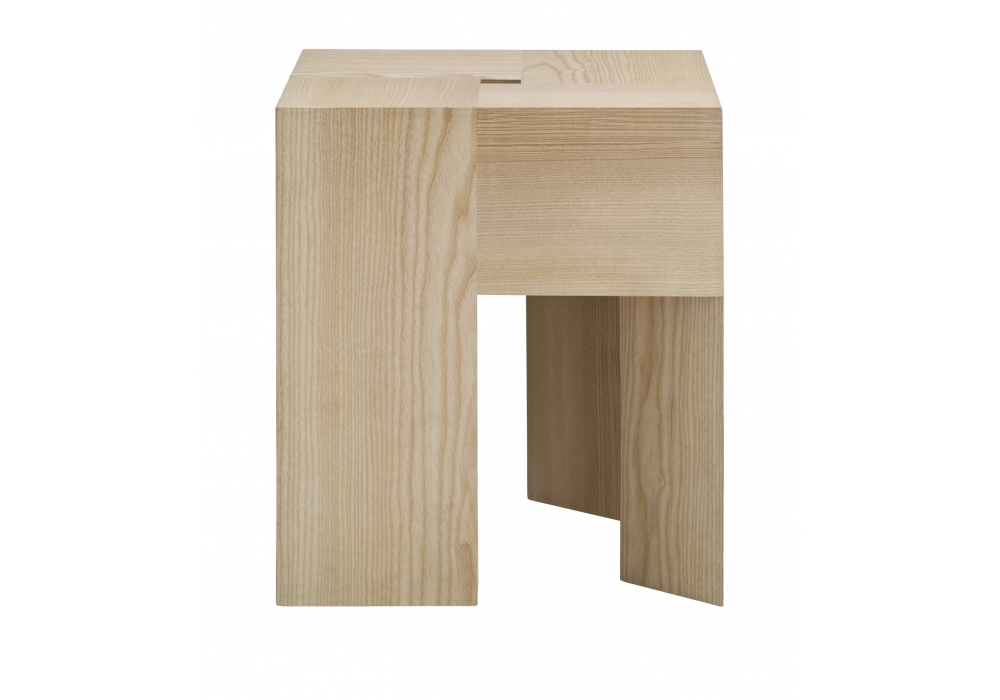 Triangle diseñada por Aldo Bakker para Karakter es una mesa auxiliar/taburete realizada en fresno macizo con laca transparente o haya maciza con tinte y laca transparente.
