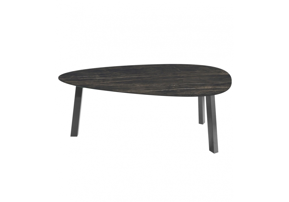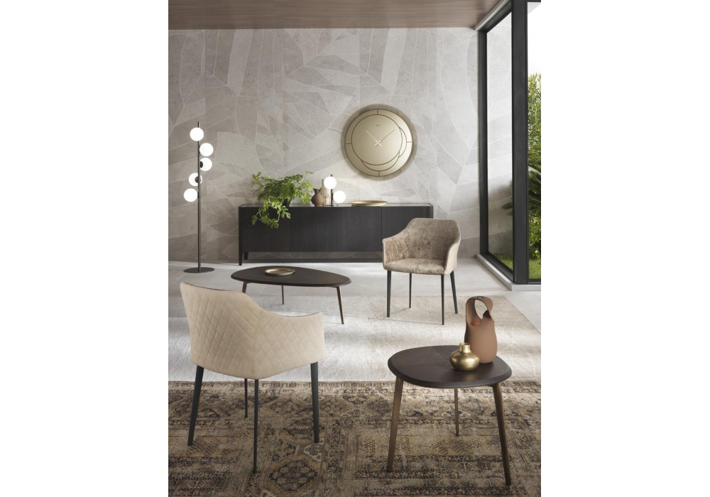 Coffee diseñada por Riflessi es una mesita con estructura de metal pintado y tapa de cristal, madera o cerámica. Disponible en diferentes medidas y acabados.