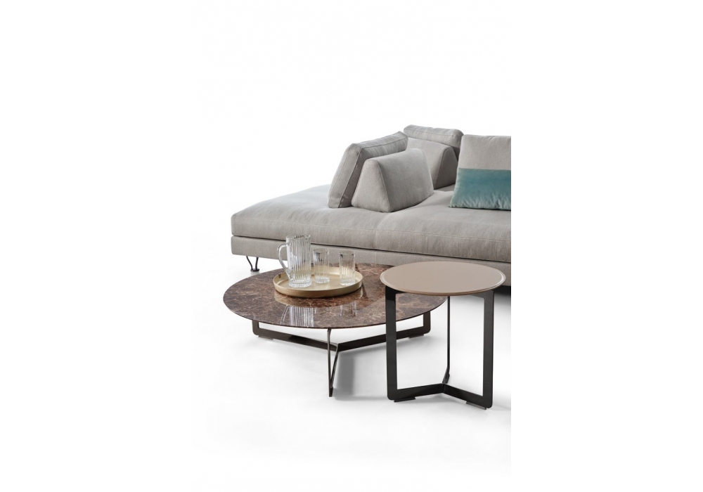 Malibù diseñada por Carlo Bimbi para Dema es una mesa auxiliar realizada con estructura de metal cortado con láser completa con antideslizante en material termoplástico moldeado y tapa en mármol, cuero o madera contrachapada. Disponible en diferentes acabados y dimensiones.