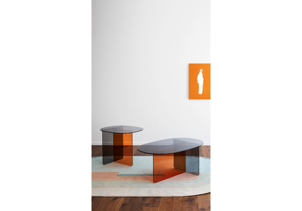 Chap diseñada por Matteo Zorzenoni para Miniforms es una mesita con base y tablero en mármol Palladio Moro o en cristal europeo gris y naranja. Disponible en diferentes tamaños.