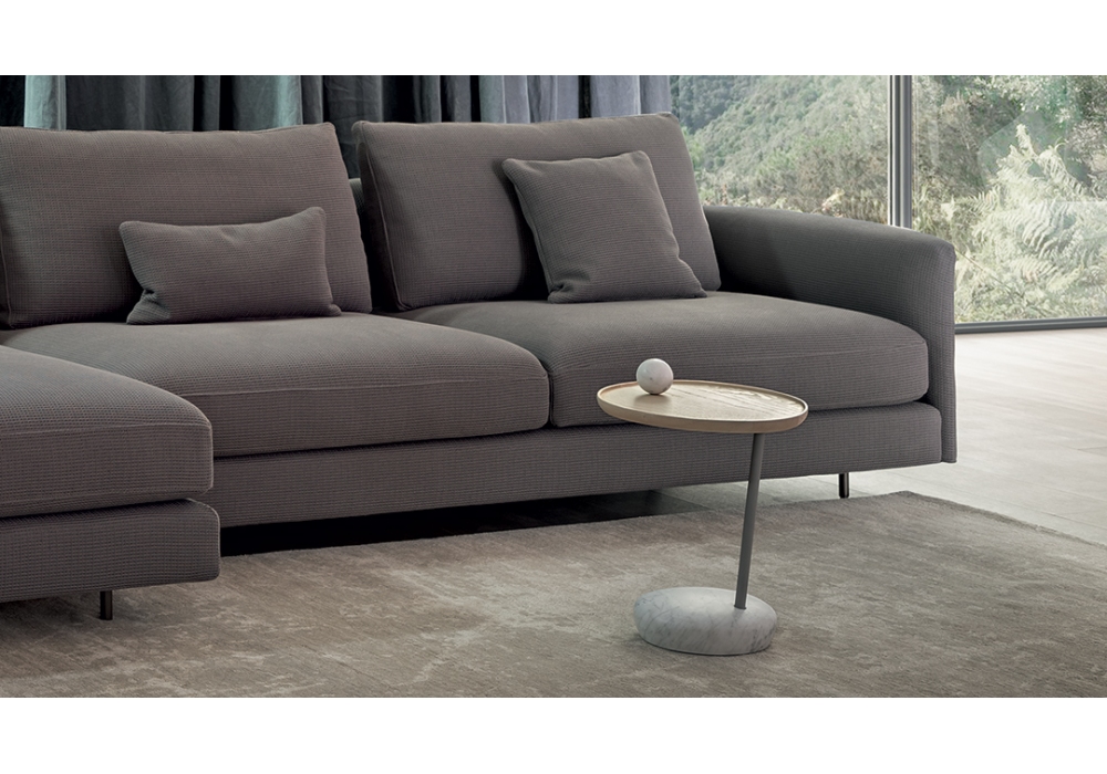 Lupino diseñada por Mauro Lipparini para Bonaldo es una mesita con base en mármol o cemento y tapa en madera maciza, en diferentes acabados. La estructura está formada por una varilla de metal pintada en varios colores.
