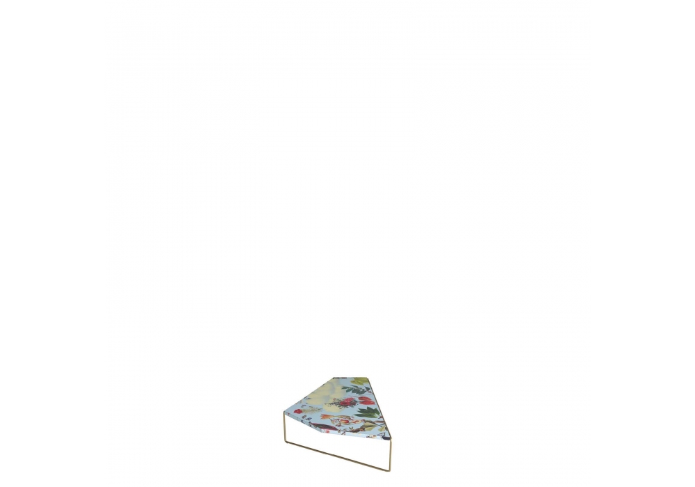 Zagazig diseñada por Driade Lab para Driade es una mesita en varilla de acero pintada con polvo de poliéster en color dorado. Sobre bilaminado y gráficos con decoración floral o rayada, realizados con impresión digital. La versión con la decoración a rayas incluye la mesa de centro L. 113 P. 74 H. 27 con decoración en blanco y rojo, mientras que en los otros tres tamaños con decoración en blanco y negro. Solo para uso interno.