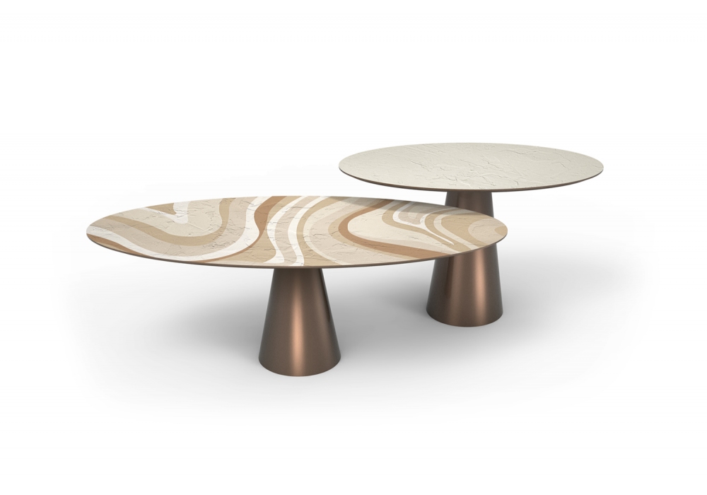 Holmes diseñada por Momenti Lab para Momenti es una mesita elíptica con tablero de MDF revestido en diferentes acabados. La tapa se puede combinar con varios tipos de base, en varios colores. Disponible en diferentes tamaños.