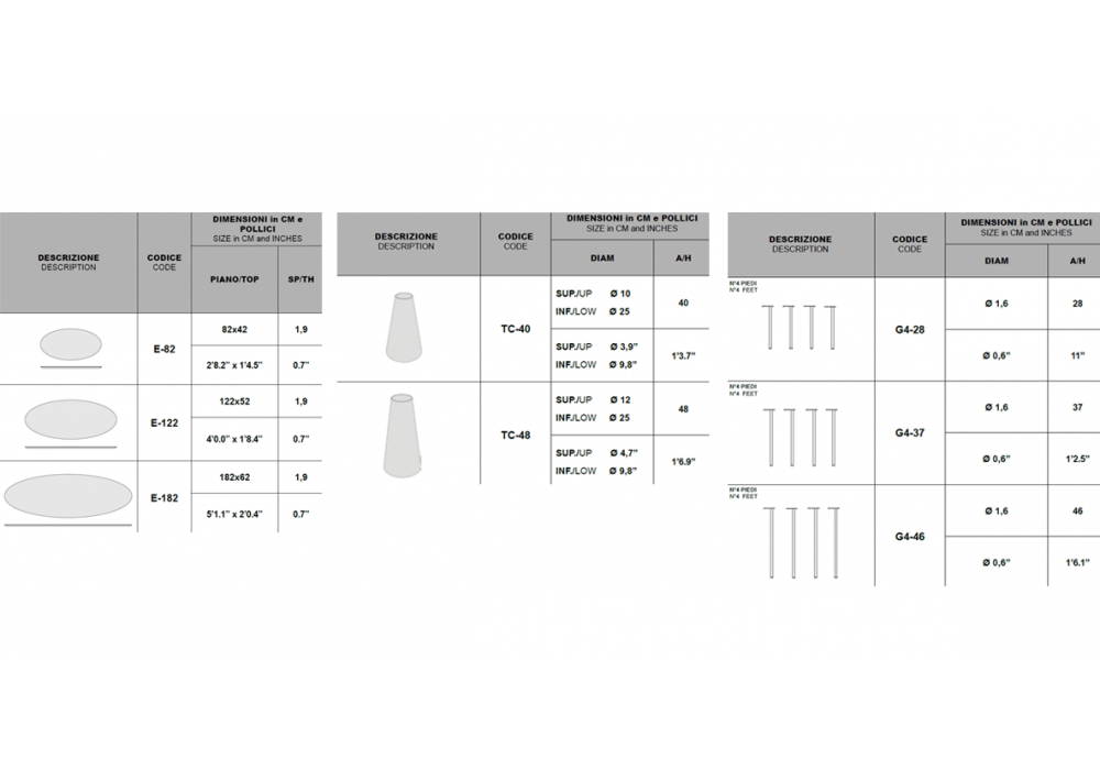 | Dimensiones | - 82 x 42; - 122 x 52 cm; - 182 x 62 cm. |