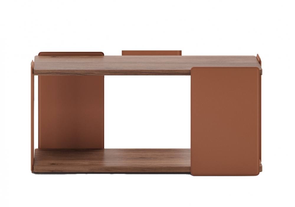 Frank diseñada por Enrico Cesana para Marac es una mesa auxiliar con base en metal revestida en piel en los colores Caramel, Graphite y Tortora. Tapas enchapadas en nogal canaletto o roble, acabado natural, o lacadas en acabado mate o brillo en los colores del muestrario. Disponible en diferentes tamaños.