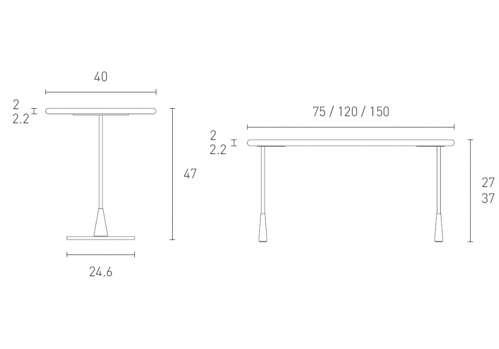 | Dimensiones | Ø 40 x H 47 cm; 120 x 120 x H 27 cm; 75 x 50 x H 37 cm; 150 x 50 x H 27 cm. |