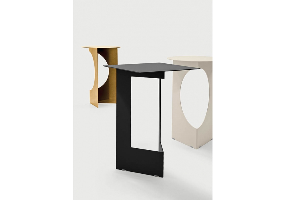 Duetto diseñada por Tim Kerp para Pianca es una mesa auxiliar con tapa redonda o cuadrada realizada en chapa plegada. Disponible en diferentes acabados.