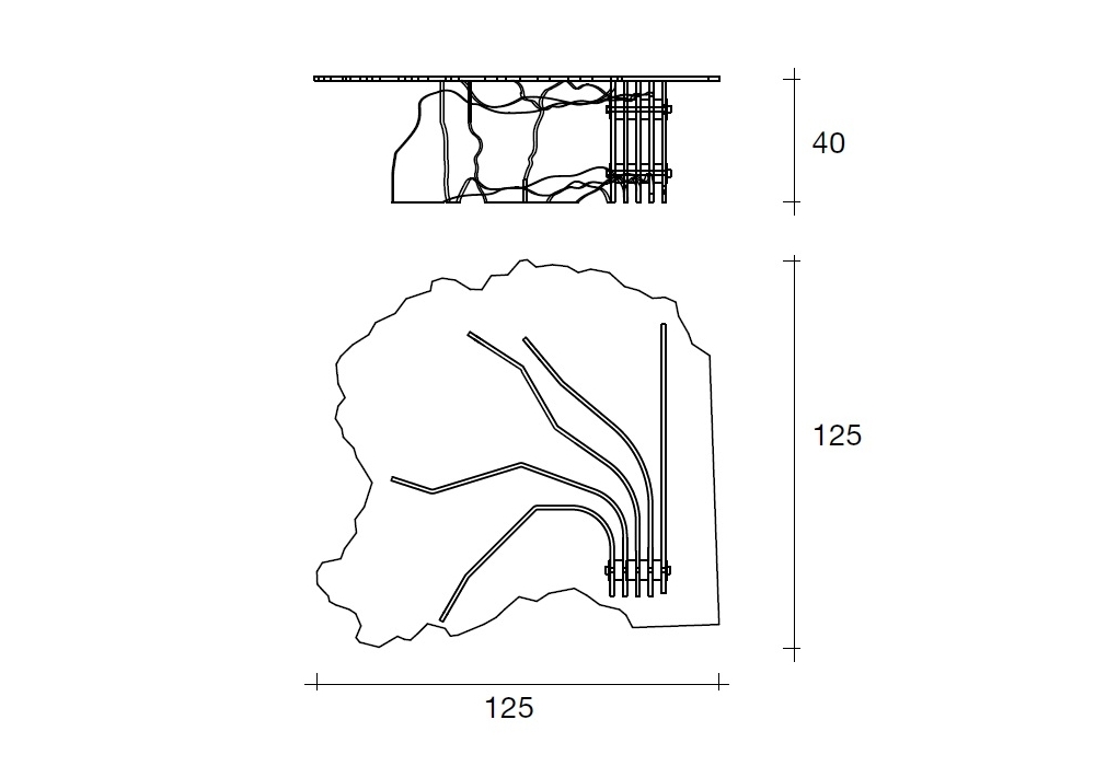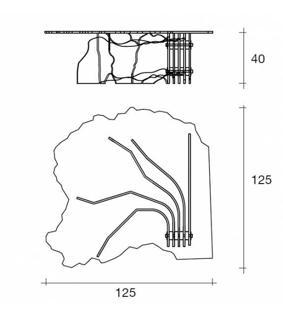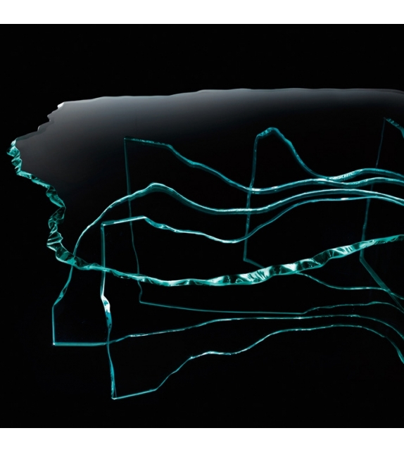 Shell diseñada por Danny Lane de Fiam es una mesita con base de vidrio curvado de 12 mm de espesor y sobre de vidrio esculpido a mano de 15 mm de espesor. Partes metálicas en acero inoxidable.