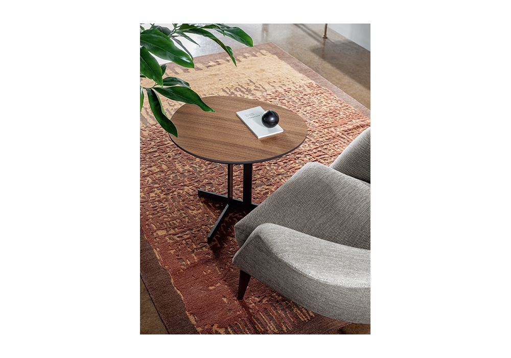 Kumo diseñada por Mauro Lipparini para Bonaldo es una mesita con tablero en nogal canaletto y base en metal pintado en diferentes acabados. Disponible en 2 tamaños.