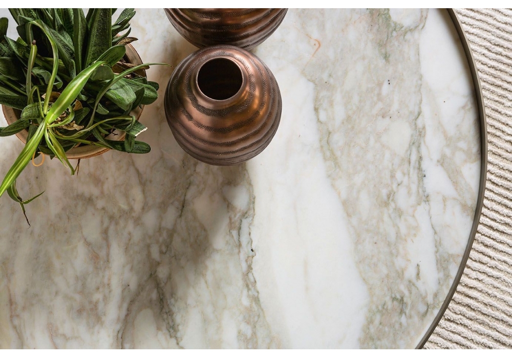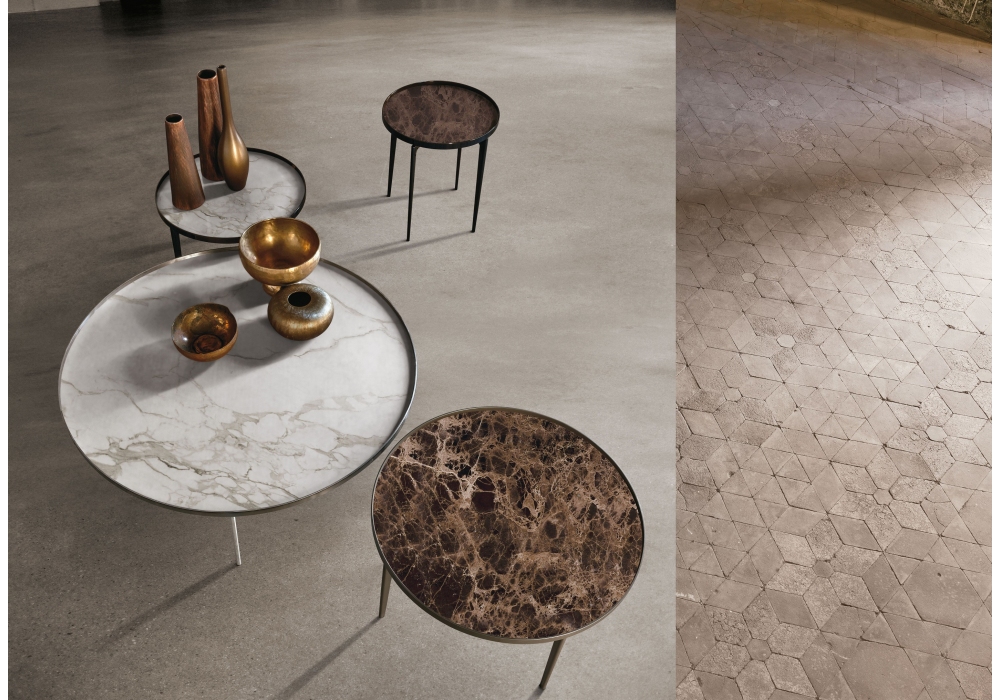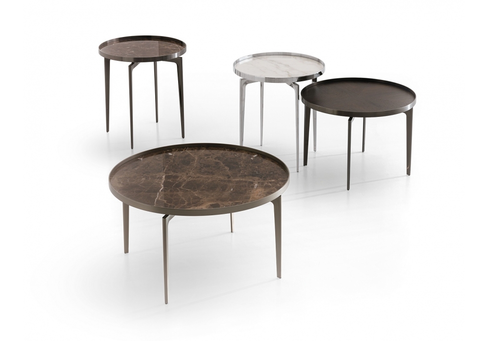 Sirio diseñada por Giuseppe Bavuso para Alivar es una mesita realizada con estructura y marco en acero inoxidable pintado, cromado o black nickel. Sobre de roble negro, roble tratado térmicamente en cuñas, de MDF lacado, de mármol o de cerámica, combinado con cristal transparente extraclaro. Mármol satinado (opaco) bajo pedido. Disponible en diferentes acabados y dimensiones.