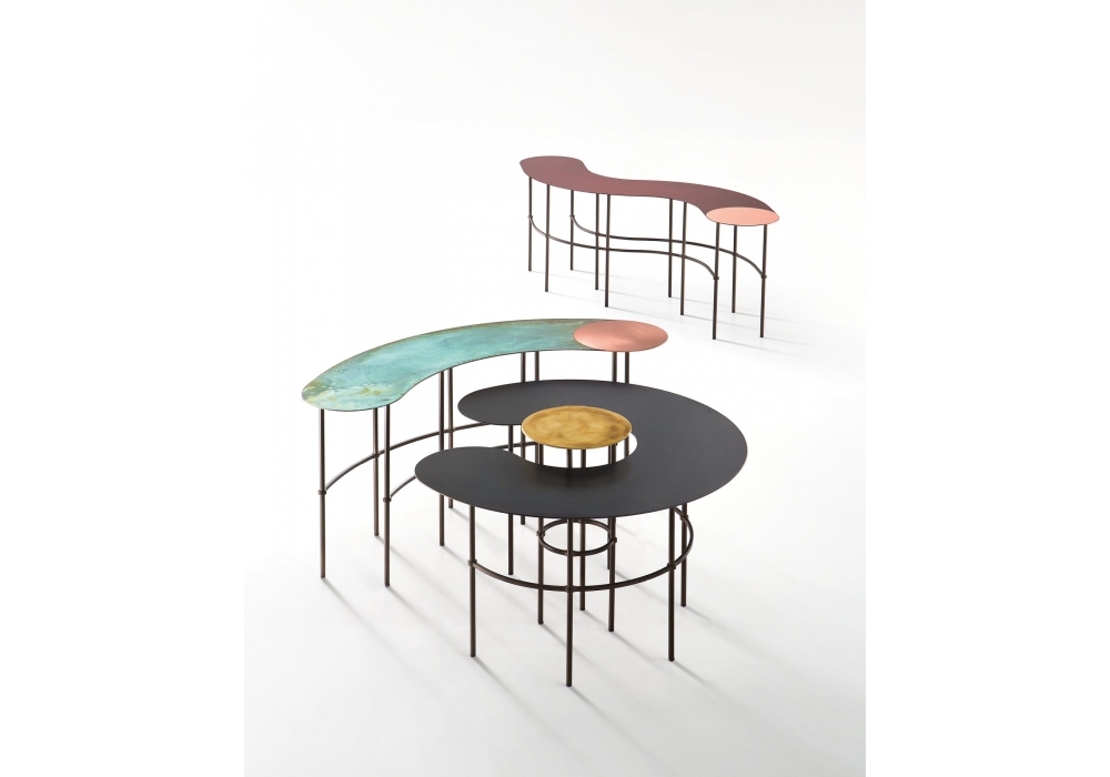 Scribble diseñada por Francesca Lanzavecchia para DeCastelli es una mesita de edición limitada, realizada en metal con acabado latón. Disponible en diferentes modelos y acabados.