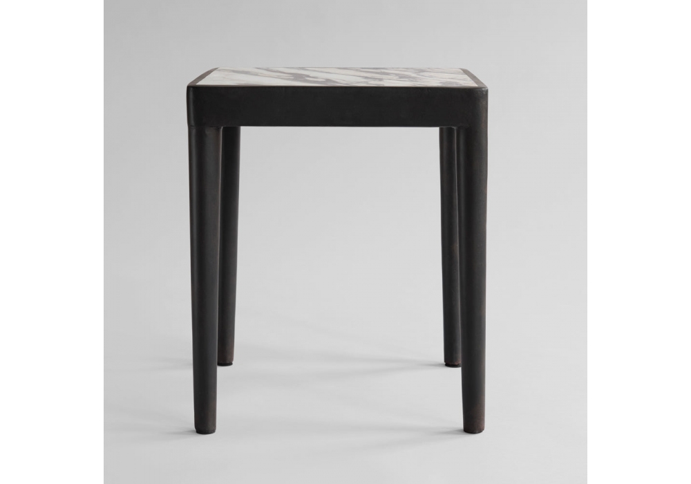 Tairu diseñada por Kristian Sofus Hansen & Tommy Hyldahl para 101 Copenhagen es una mesita realizada en fibra de cemento en acabado café y tapa de mármol, disponible en diferentes acabados.
