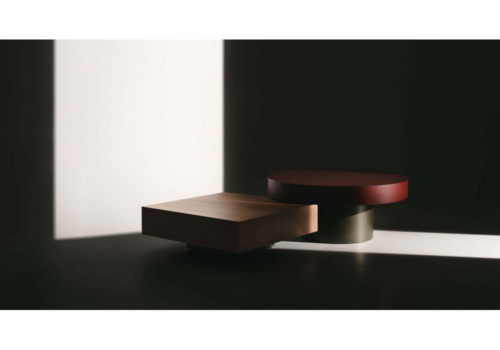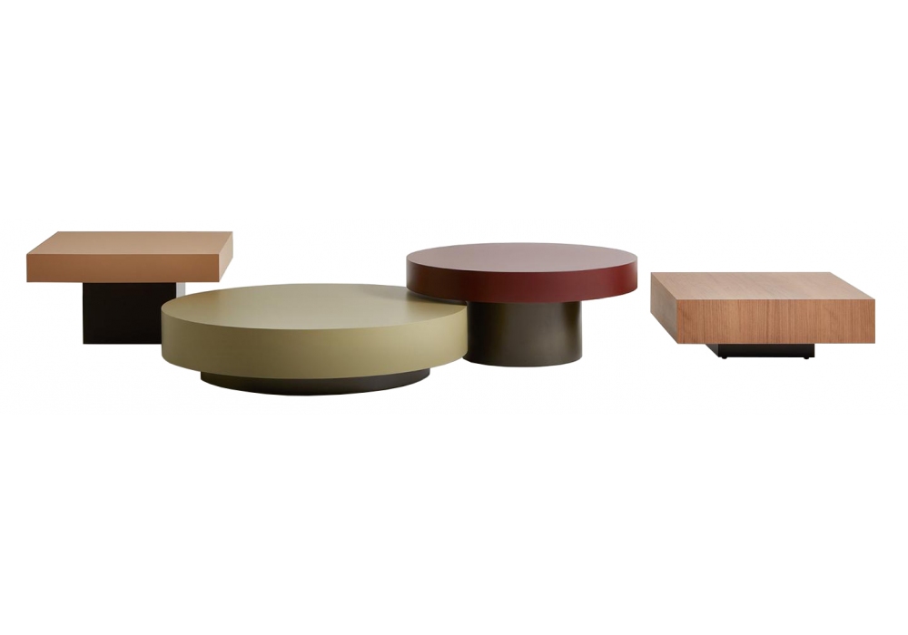Dolmen diseñada por David Lopez Quincoces para Lema es una familia de mesitas caracterizadas por tableros con formas geométricas naturales -rectangulares, cuadradas o redondas- para ser compuestos libremente entre sí. La estructura es de metal pintado bronce, mientras que las tapas están disponibles en laca mate o madera.