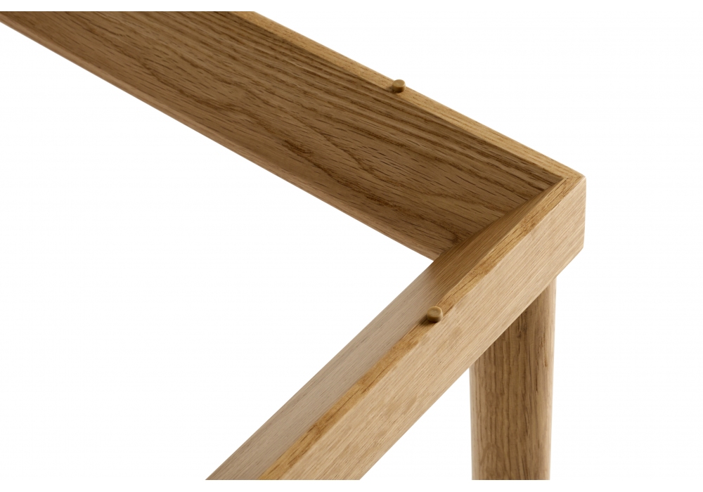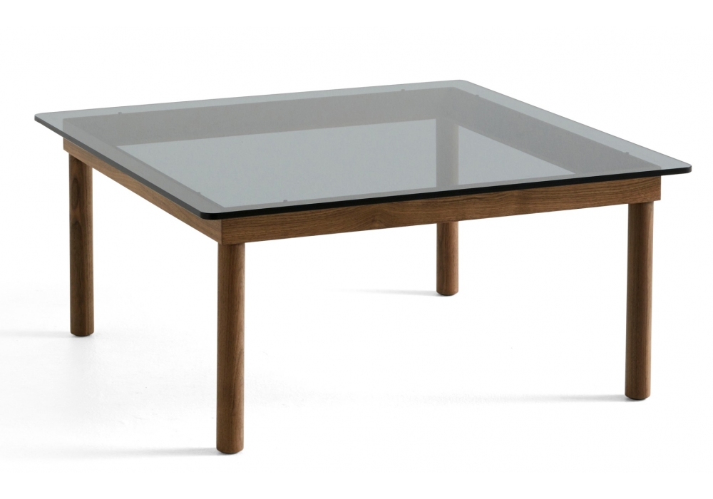 Kofi diseñada por Martin Solem para Hay es una mesita con sobre en cristal templado transparente, coloreado o estriado transparente. Estructura y patas en roble macizo o nogal con ménsulas de refuerzo insertadas. Disponible en diferentes acabados y dimensiones.
