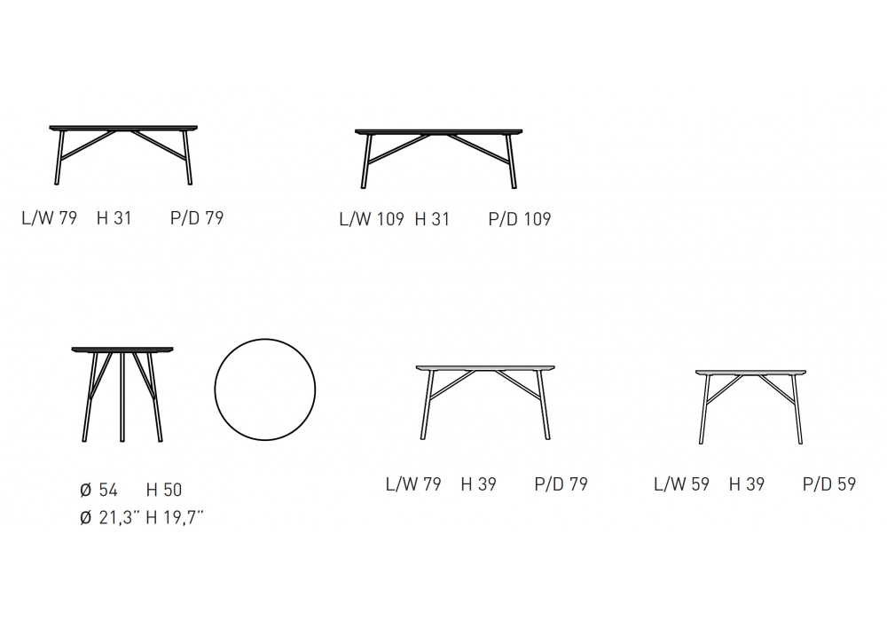 | Dimensiones | 79 x 79 x H 31 cm; 109 x 109 x H 31 cm; 59 x 59 x H 39 cm; 79 x 79 x H 39 cm; Ø 84 x H 50 cm. |