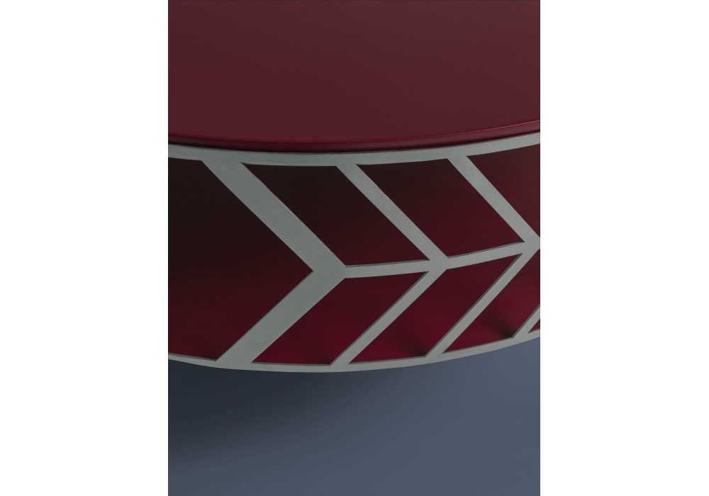 Lok diseñada por Elena Salmistraro para My Home Collection es una mesa auxiliar circular en MDF lacado mate con anillo externo en metal pintado.