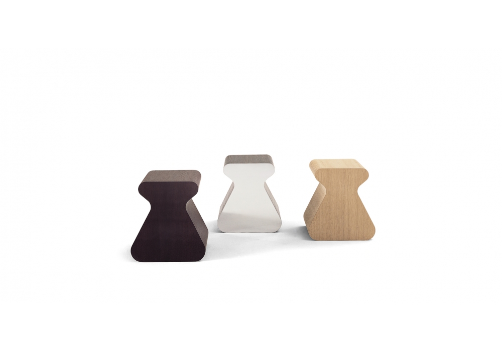 Ghost diseñada por Alessandro Pedretti para Emmemobili es una mesita realizada en contrachapado curvado y chapado. También disponible con dos frentes revestidos en aluminio o latón.