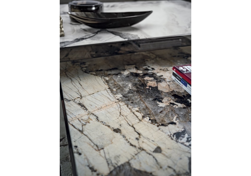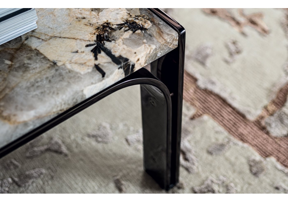 Edge diseñada por Giusepe Iasparra para Longhi es una mesita con estructura en metal rectificado en acabado brillante o mate y tablero en mármol. Disponible en diferentes dimensiones.