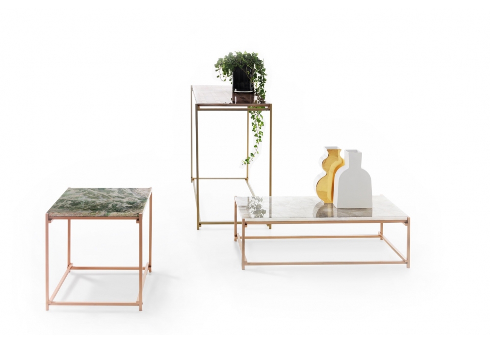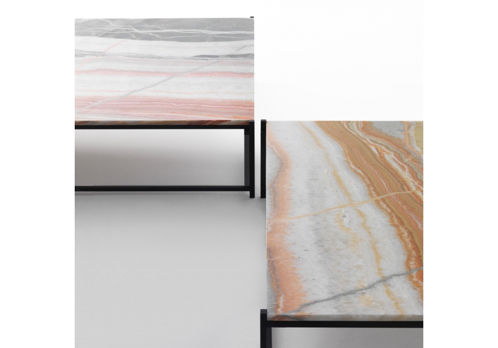 Nodo diseñada por Enzo Berti para Kreoo es una mesita con estructura de metal formada por elementos delgados de sección cuadrada en la que se inserta la tapa. Tapa de mármol en diferentes acabados. Disponible en diferentes dimensiones.