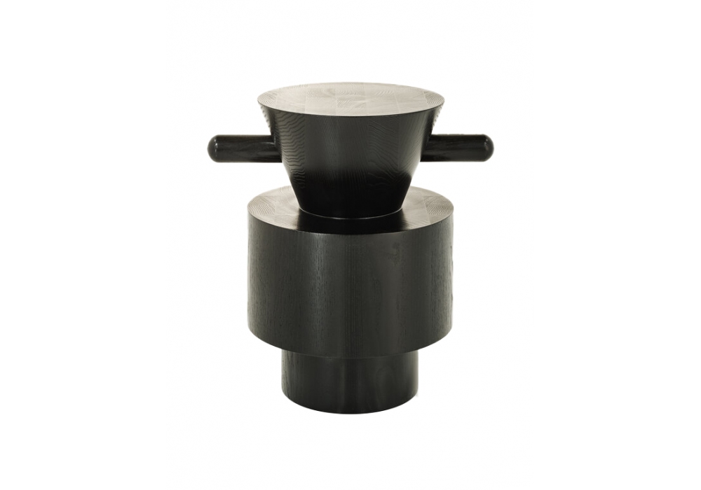 Grain Cut diseñada por Jaime Hayon para Wittmann es una mesa auxiliar en fresno macizo teñido y lacado negro o fresno macizo lacado a poro abierto RAL.