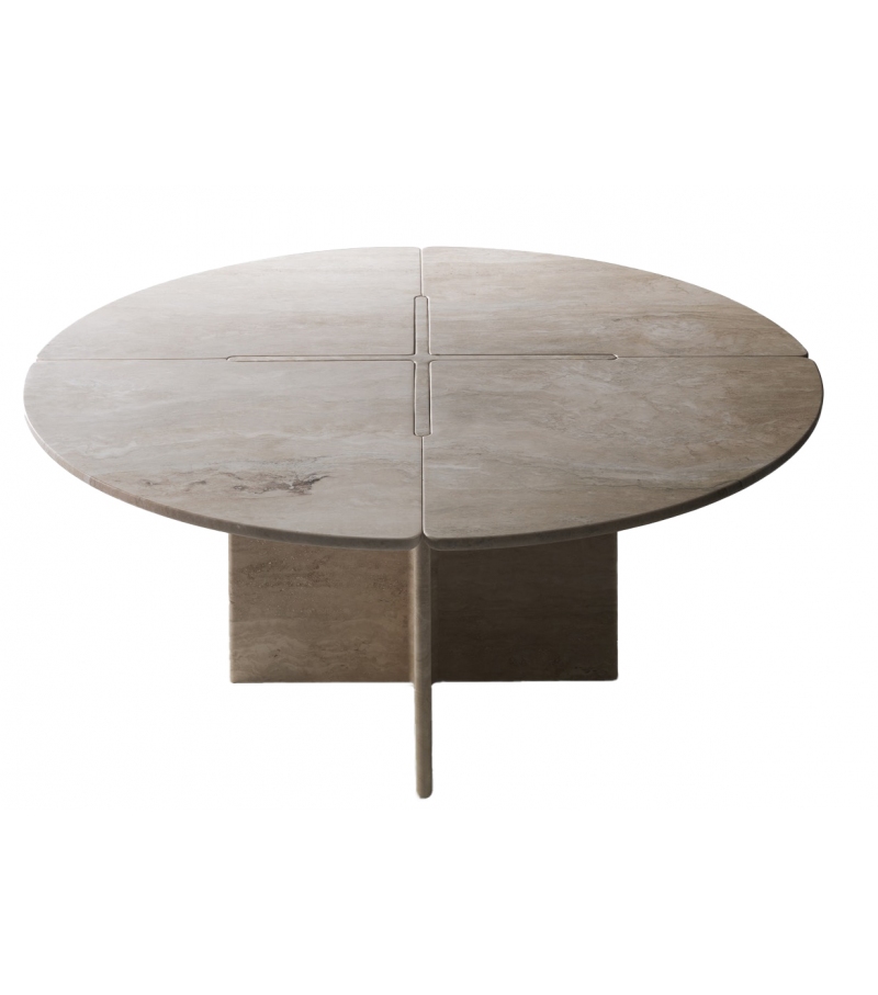 More diseñada por Marco Spatti para Kreoo es una mesita realizada en mármol. Es posible elegir la versión con o sin detalle de cruz metálica central. Disponible en diferentes dimensiones.