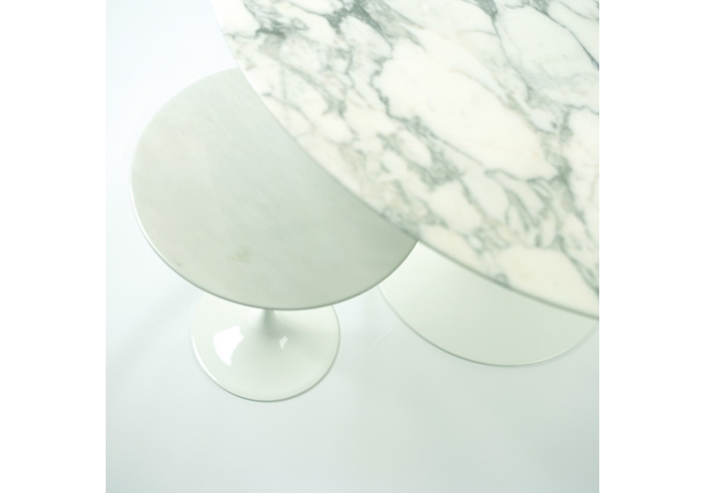 Saarinen diseñada por Eero Saarinen para Knoll es una mesita baja redonda con tablero de mármol en varios acabados en acabado brillante o satinado. Base de acero con revestimiento de Rilsan blanco o negro.