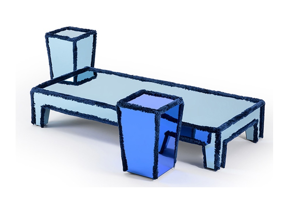Azul diseñada por Paola Navone para Turri es una mesita con estructura en MDF y espejo. Disponible en diferentes modelos.