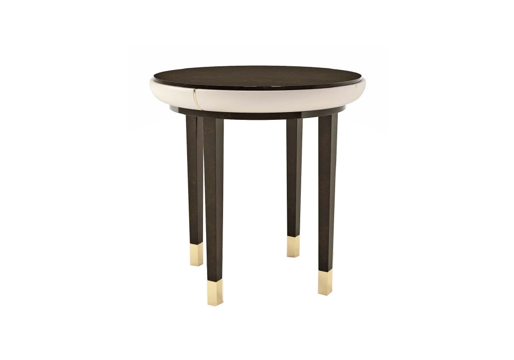 Noir diseñada por Andrea Bonini para Turri es una mesa auxiliar con estructura en MDF y madera maciza con acabado poliéster brillante decorado a mano. Tapa en mármol o madera revestida en diferentes pieles. Partes metálicas en acabado oro claro o bronce.