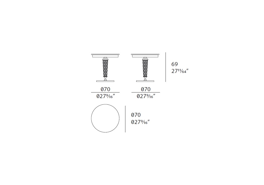 Numero Tre diseñada por Roberto Serio para Turri es una mesa auxiliar con estructura en MDF, madera maciza, madera contrachapada y tableros de partículas con acabado poliéster brillante decorado a mano. Tapicería en cuero bordado, tapa en mármol o madera.