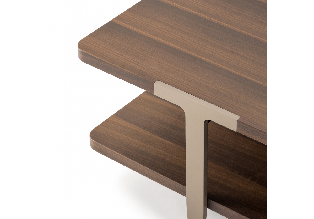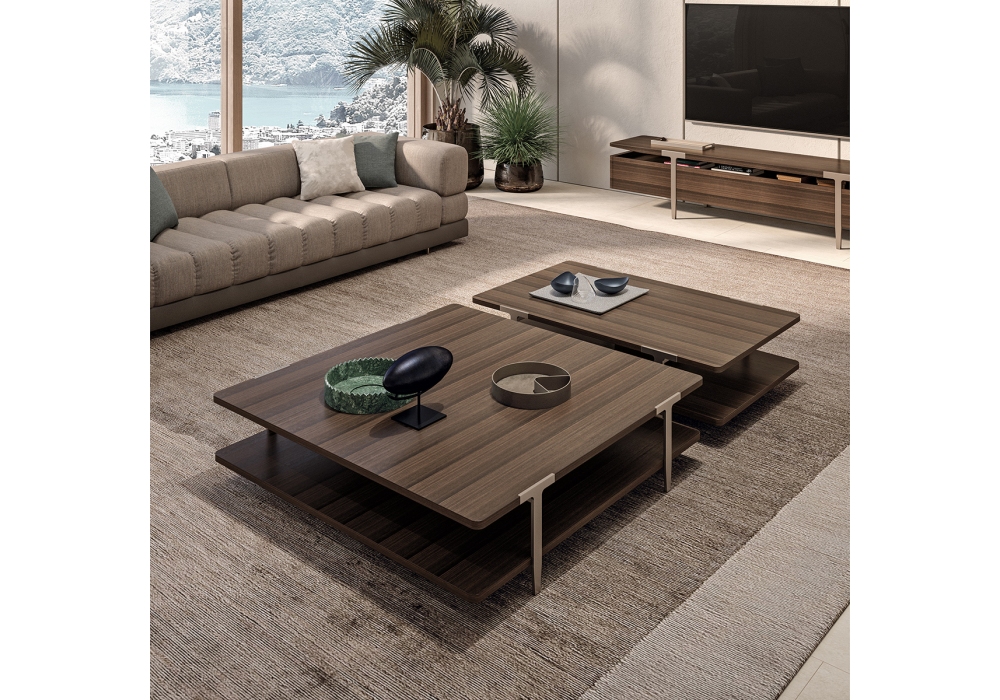 Domus diseñada por Matteo Nunziati para Turri es una mesita con tablero inferior y superior en madera contrachapada Eucalipto termotratada. Estructura metálica en acabado platino claro mate. La versión con tapa con inserciones de mármol está disponible bajo pedido.