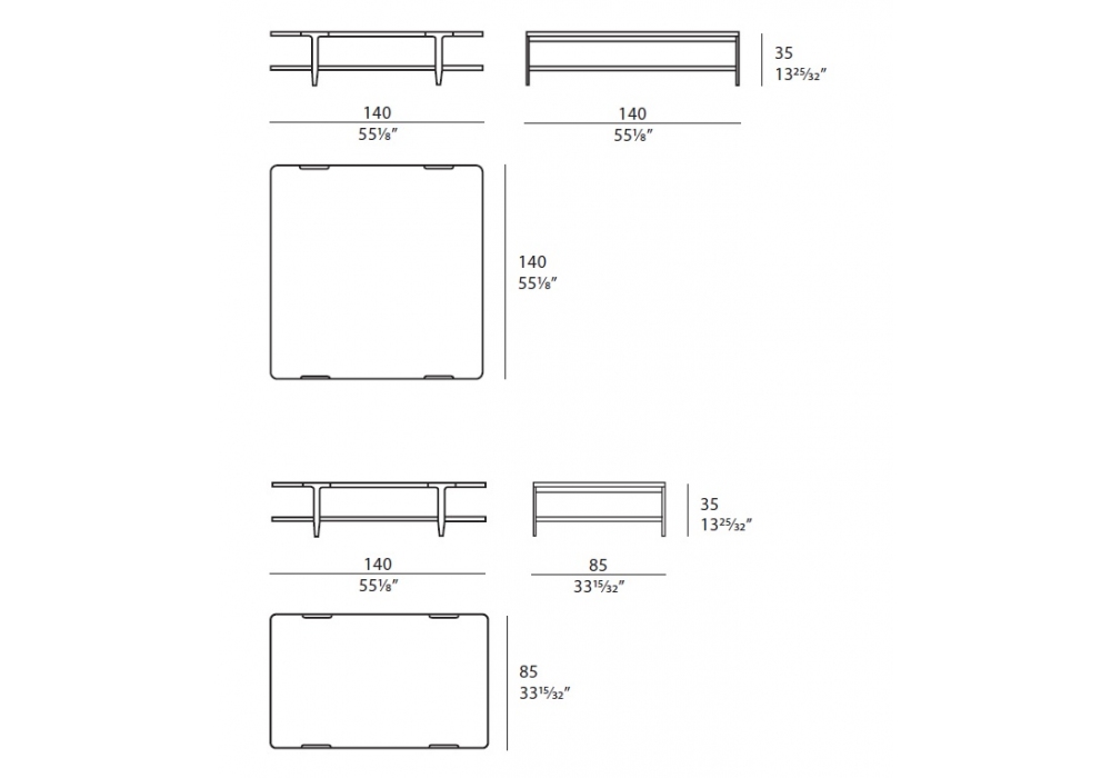 | Dimensiones | 140 x 140 x H 35 cm; 140 x 85 x H 35 cm. |