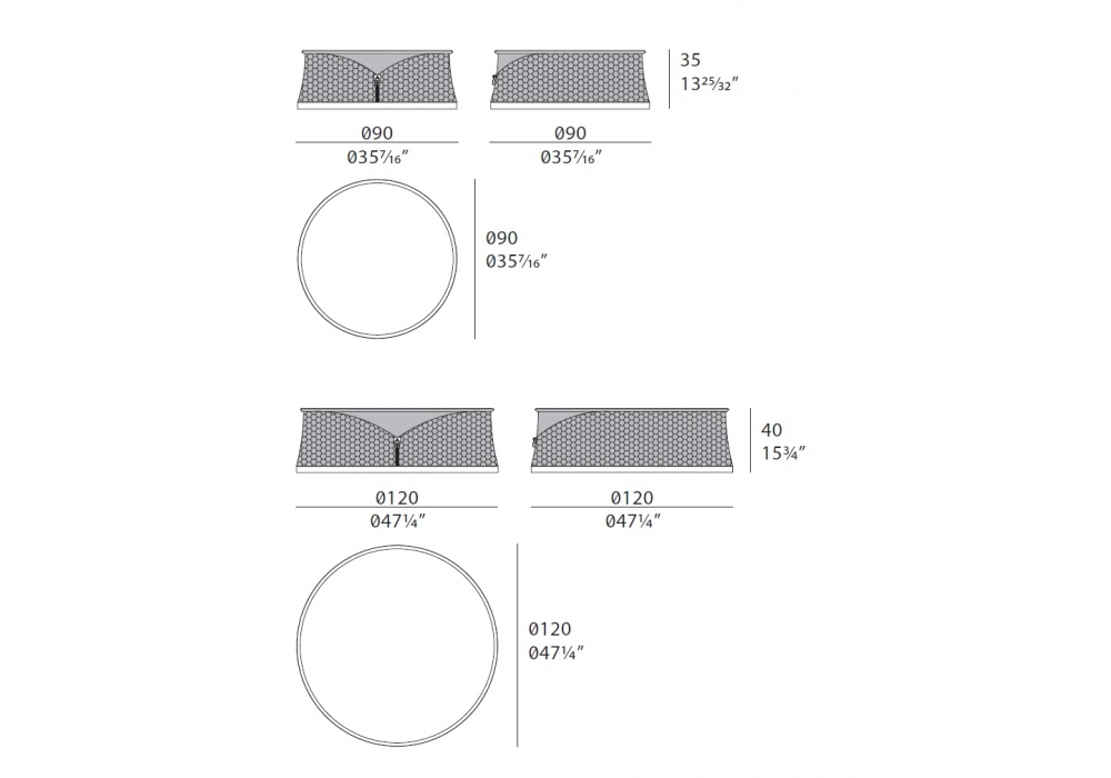 | Dimensiones | Ø 90 x H 35 cm; Ø 120 x H 40 cm. |