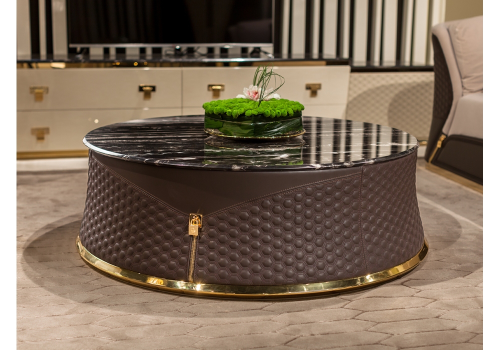 Vogue diseñada por Andrea Bonini para Turri es una mesita con estructura en madera maciza y contrachapado, revestimiento de la estructura en piel o tela con bordados y tablero en mármol o madera. Detalles metálicos en acabado dorado. Disponible en diferentes dimensiones.