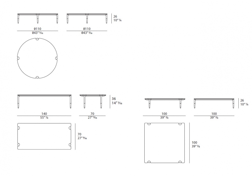 | Dimensiones | Ø 110 x H 26 cm; 140 x 70 x H 36 cm; 100 x 100 x H 26 cm. |