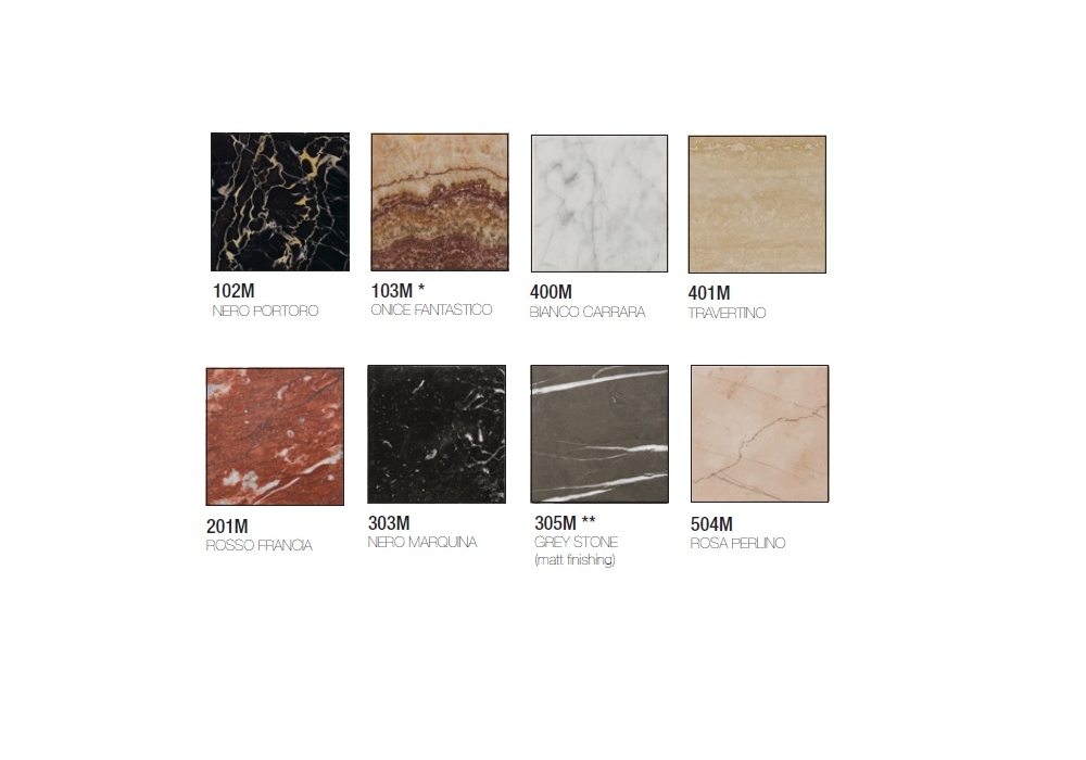 Zero diseñada por Andrea Bonini para Turri es una mesita con patas de metal en diferentes acabados mate y tablero en MDF lacado brillante. Disponible en la versión con la adición de una segunda tapa de mármol.
