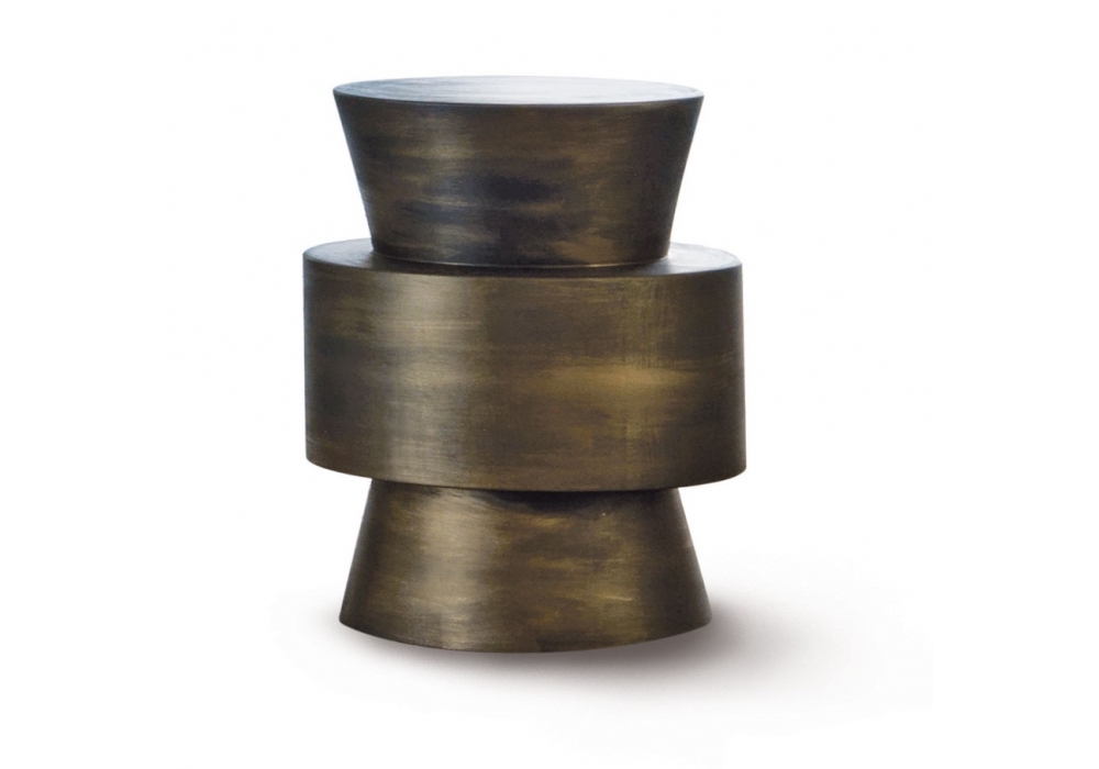 Moai diseñada por Riccardo Gussoni para MisuraEmme es una mesita de tilo macizo barnizado bronce envejecido, lacado mate o lacado brillante.