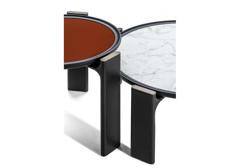 Duo Low Table diseñada por Roberto Lazzeroni para Poltrona Frau & Ceccotti Collezioni es una mesa de centro compuesta por estructura de madera maciza de fresno y tapa en vidrio lacado, mármol o madera. Está disponible en diferentes acabados, formas y tamaños.
