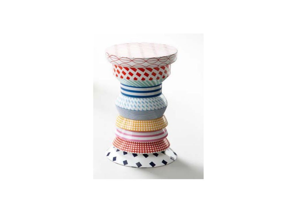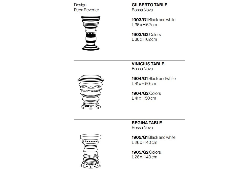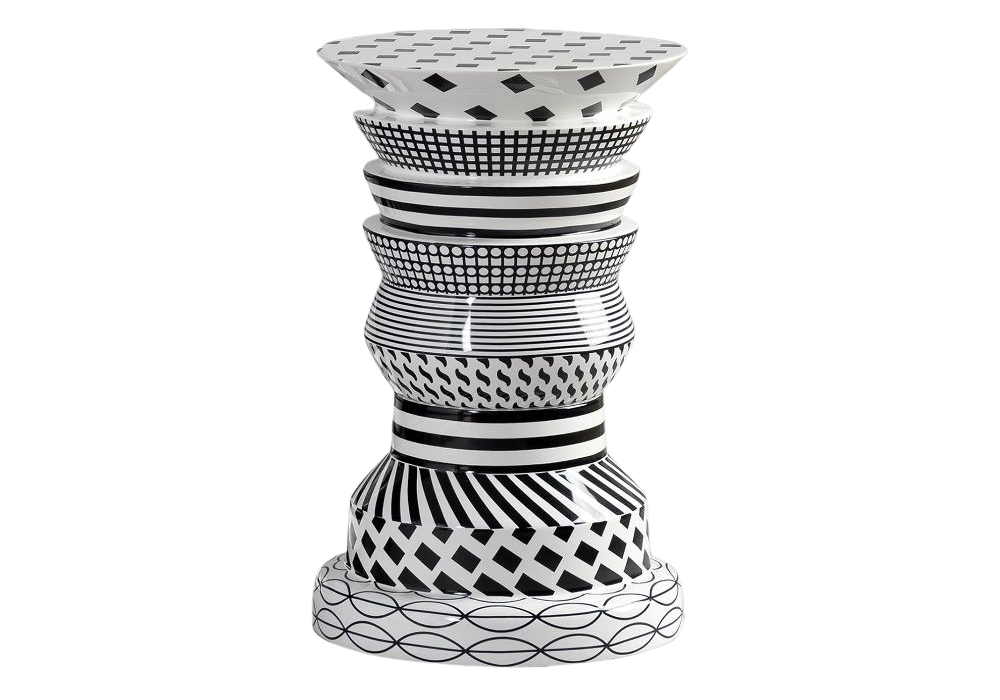 Bossanova diseñada por Pepa Reverter para Bosa es una mesita de cerámica, disponible en diferentes dimensiones. Se puede decorar en blanco y negro o multicolor.
