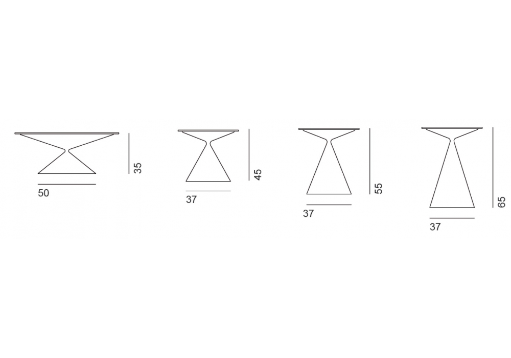 | Dimensiones | • Ø 90 x H 35 cm; • Ø 110 x H 35 cm; • Ø 50 x H 45 cm; • Ø 60 x H 45 cm; • Ø 75 x H 45 cm; • Ø 50 x H 55 cm; • Ø 60 x H 55 cm; • Ø 75 x H 55 cm; • Ø 50 x H 65 cm; • Ø 60 x H 65 cm; • Ø 75 x H 65 cm |