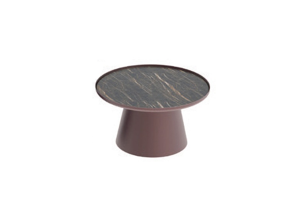 Ring diseñada por Riflessi es una mesita con base en aluminio pintado bronce y tapa en aluminio o cerámica. Disponible en diferentes dimensiones.