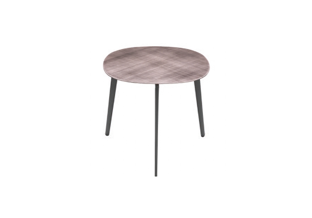Coffee diseñada por Riflessi es una mesita con estructura de metal pintado grafito y tapa de metal en acabado tibetano cepillado a mano con efecto rayado y cruzado o revestido en piel. Disponible en diferentes dimensiones.