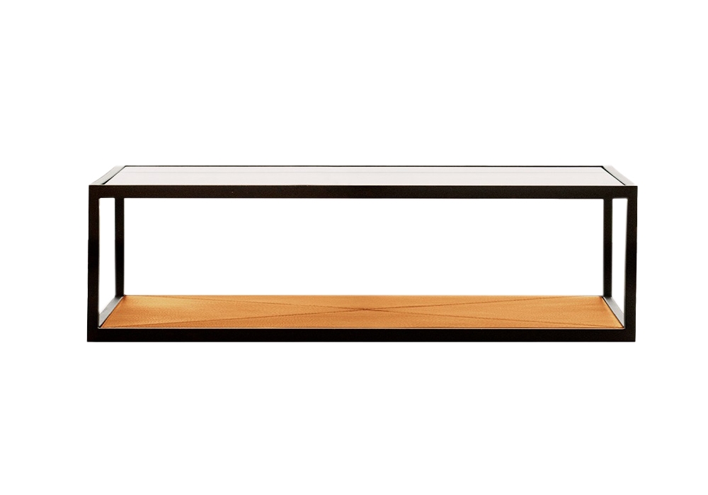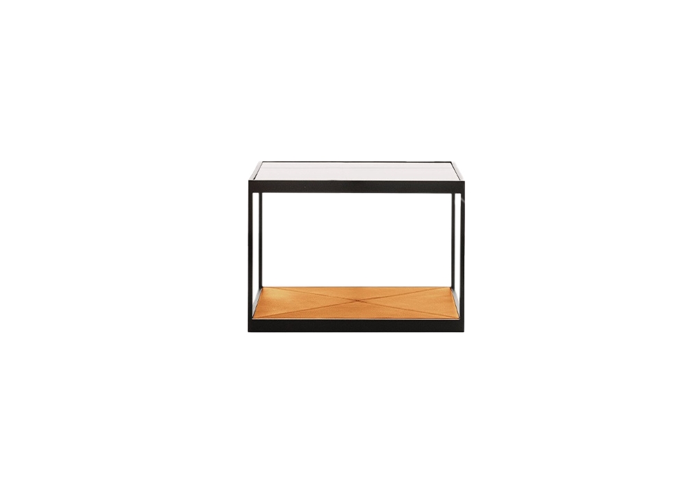 Monaco diseñada por Broberg & Ridderstråle para Röshults es una mesita con estructura en acero inoxidable, tapa superior en cristal y tapa inferior revestida en piel. Disponible en diferentes dimensiones.