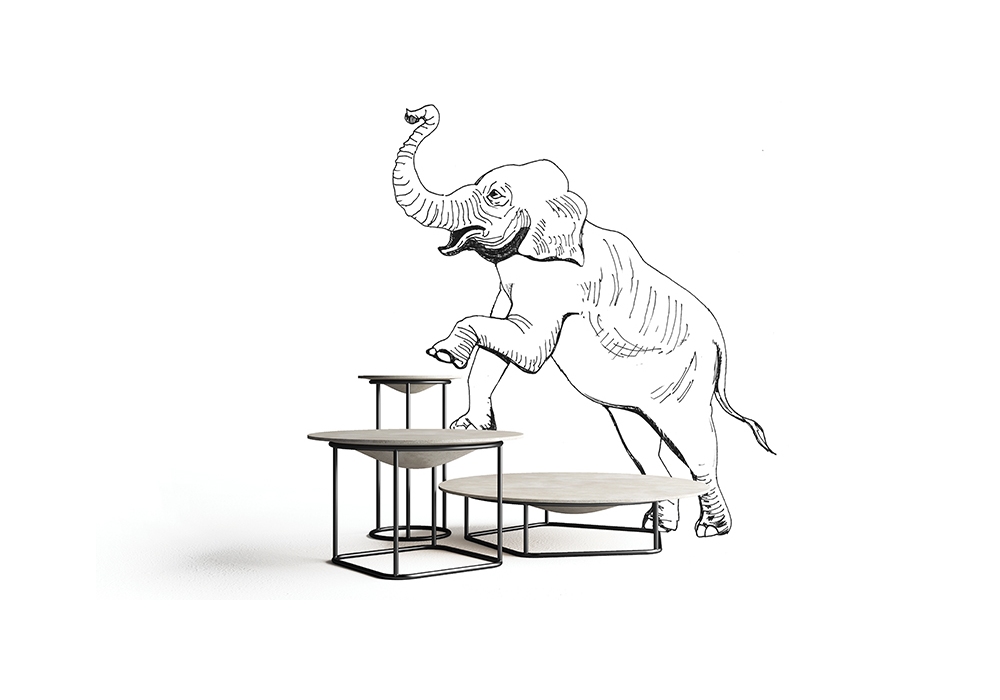 Circus diseñada por Studio 14 para Minotti Italia es una mesita con tapa de hormigón y estructura de metal. Disponible en diferentes acabados.