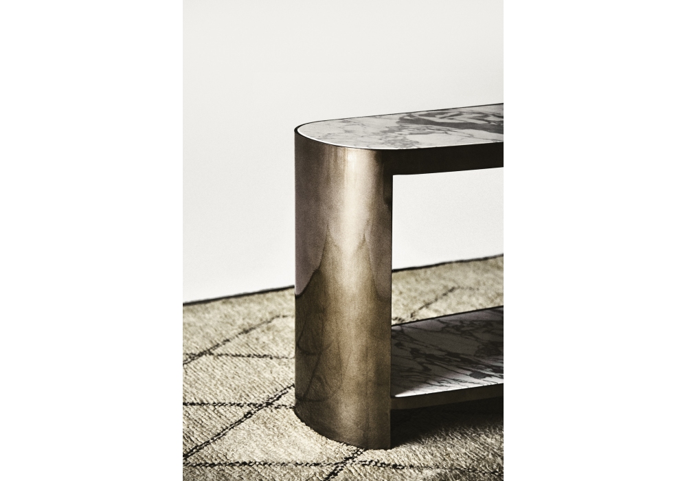Kyoto diseñada por Palomba Serafini Associati para Ferri 1956 es una mesita con estructura en metal y tapa en mármol o vidrio templado negro. Disponible en diferentes modelos.