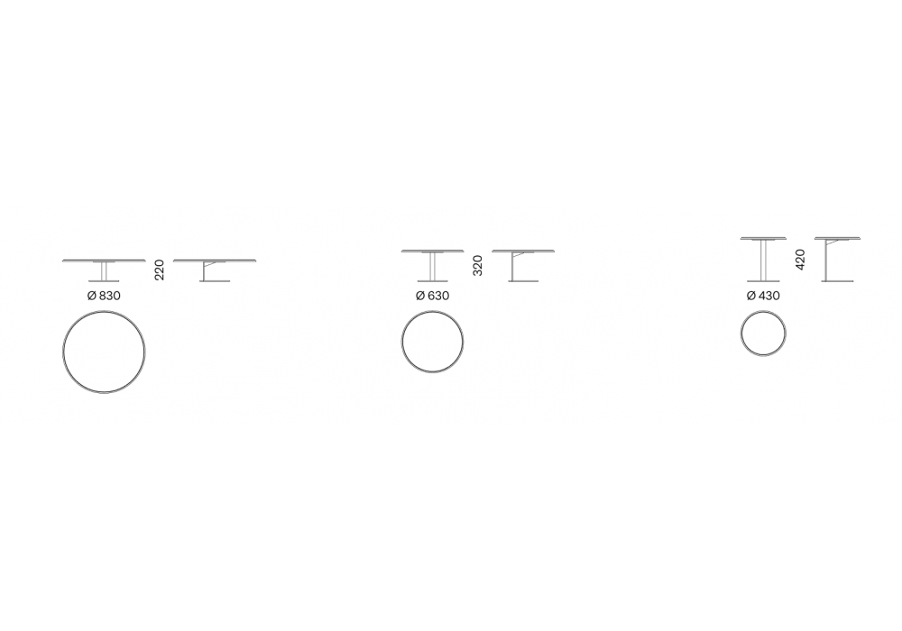 | Dimensiones | Ø 43 x H 42 cm; Ø 63 x H 32 cm; Ø 83 x H 22 cm. |