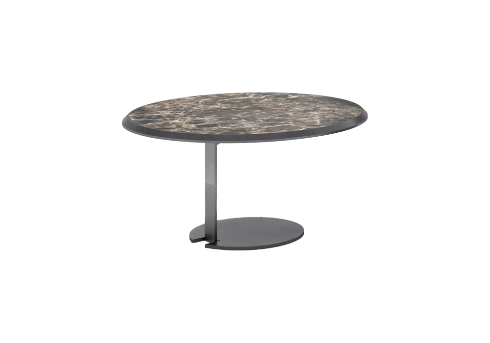 Voilà diseñada por Silvano Pierdonà para Capodopera es una mesita con base de chapa cortada con láser en diferentes acabados. La parte superior está integrada en un marco perimetral y está hecha de diferentes materiales.
