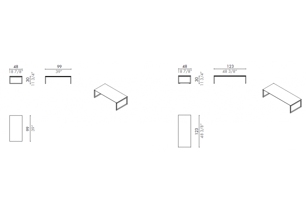 | Dimensiones | 99 x 48 x H 30 cm; 123 x 48 x H 30 cm. |